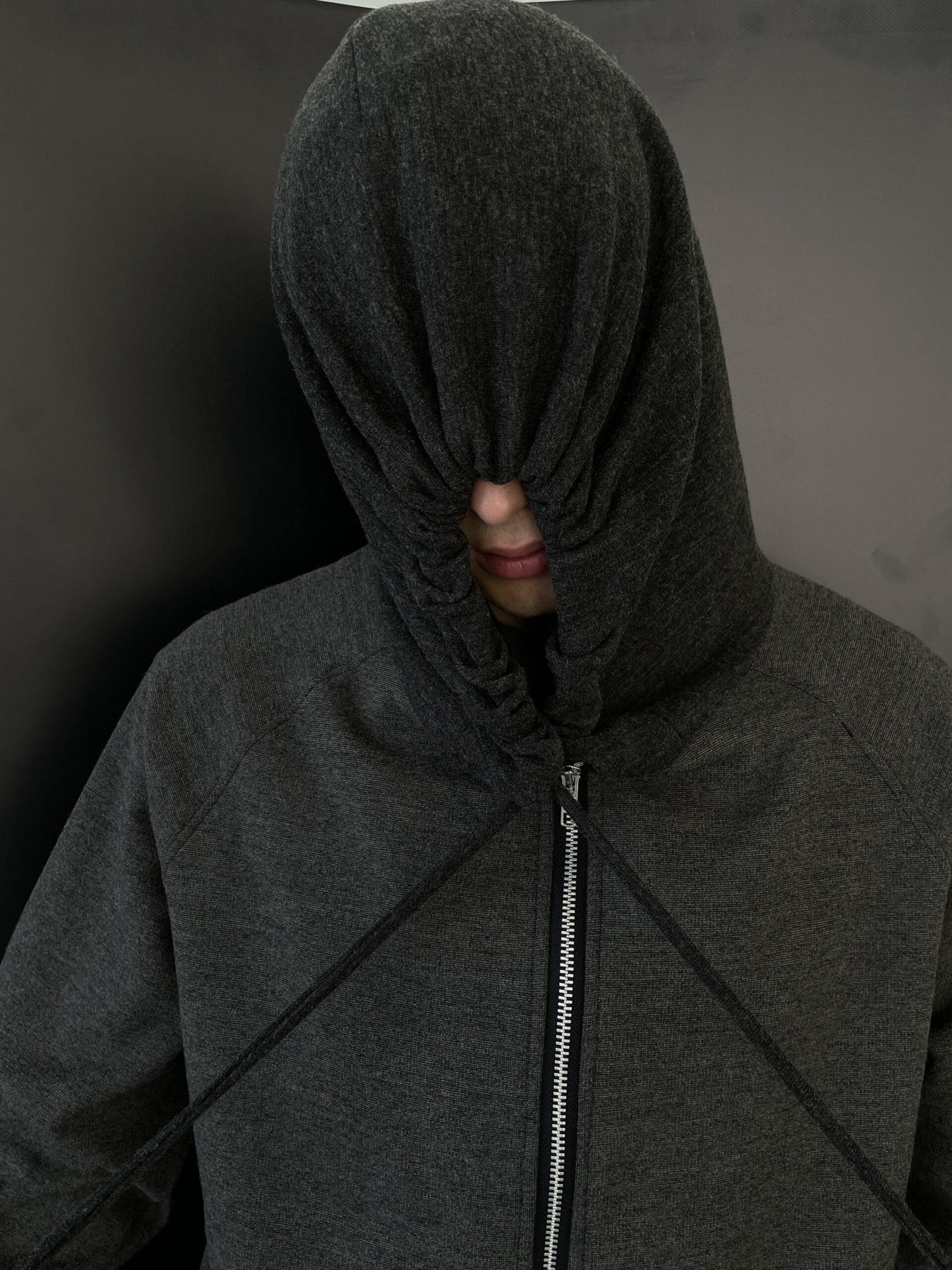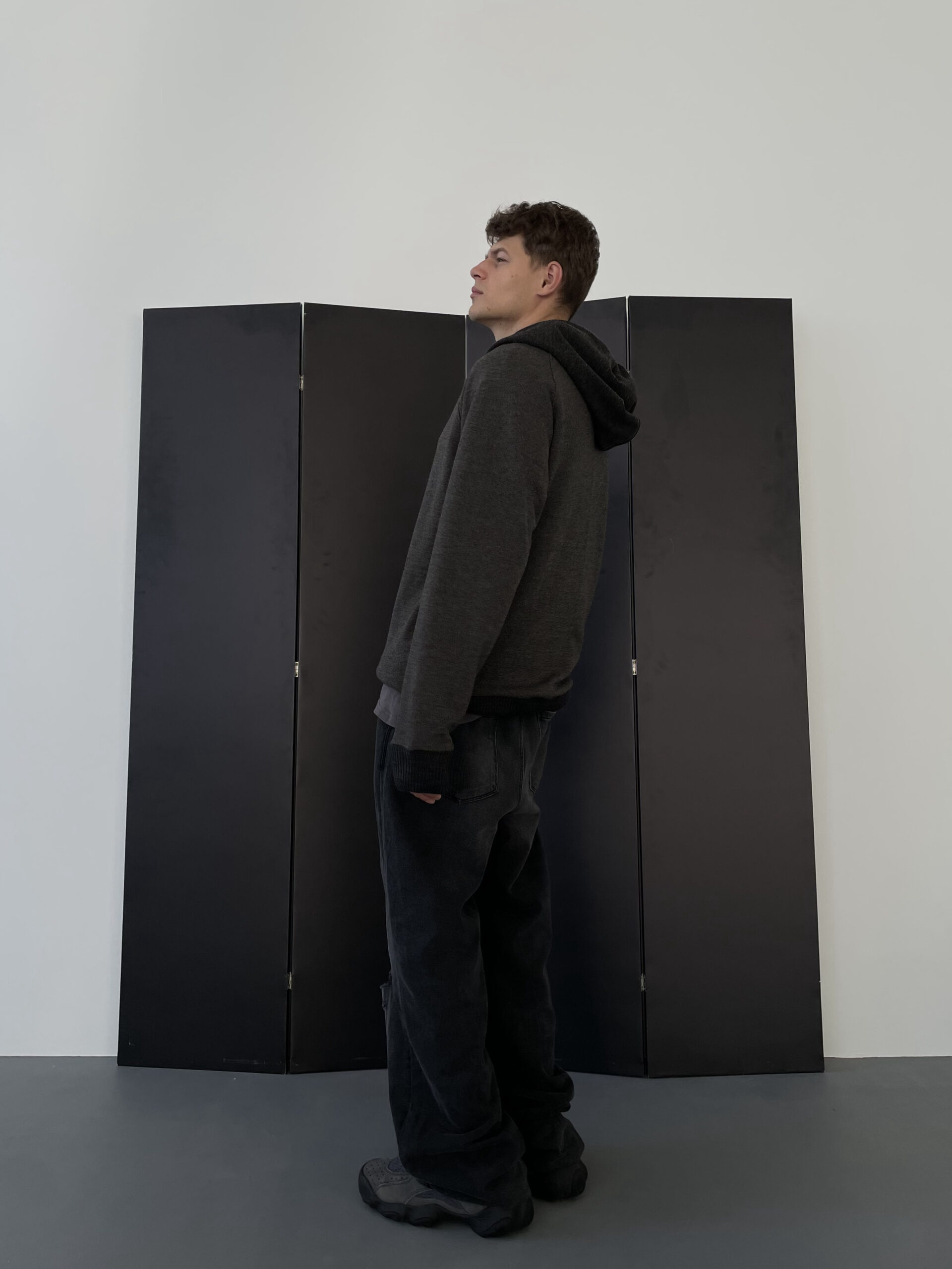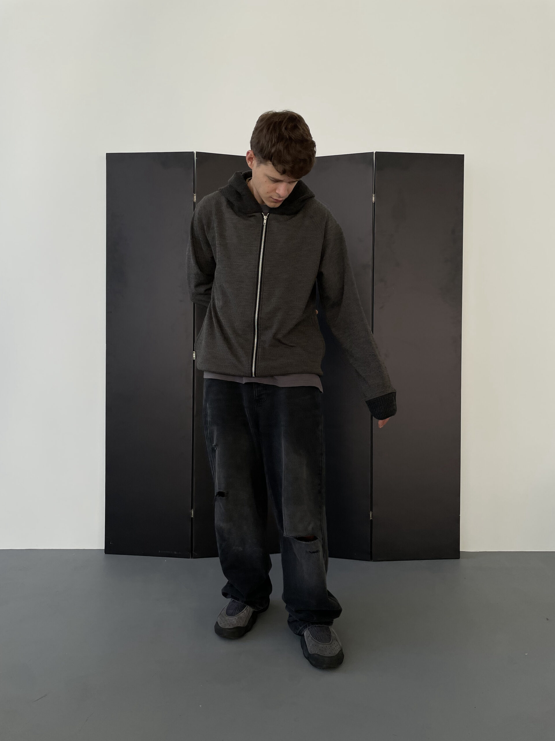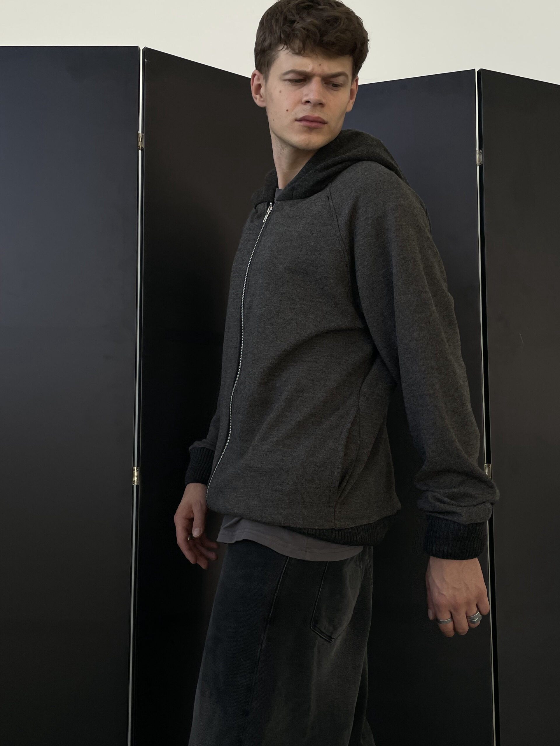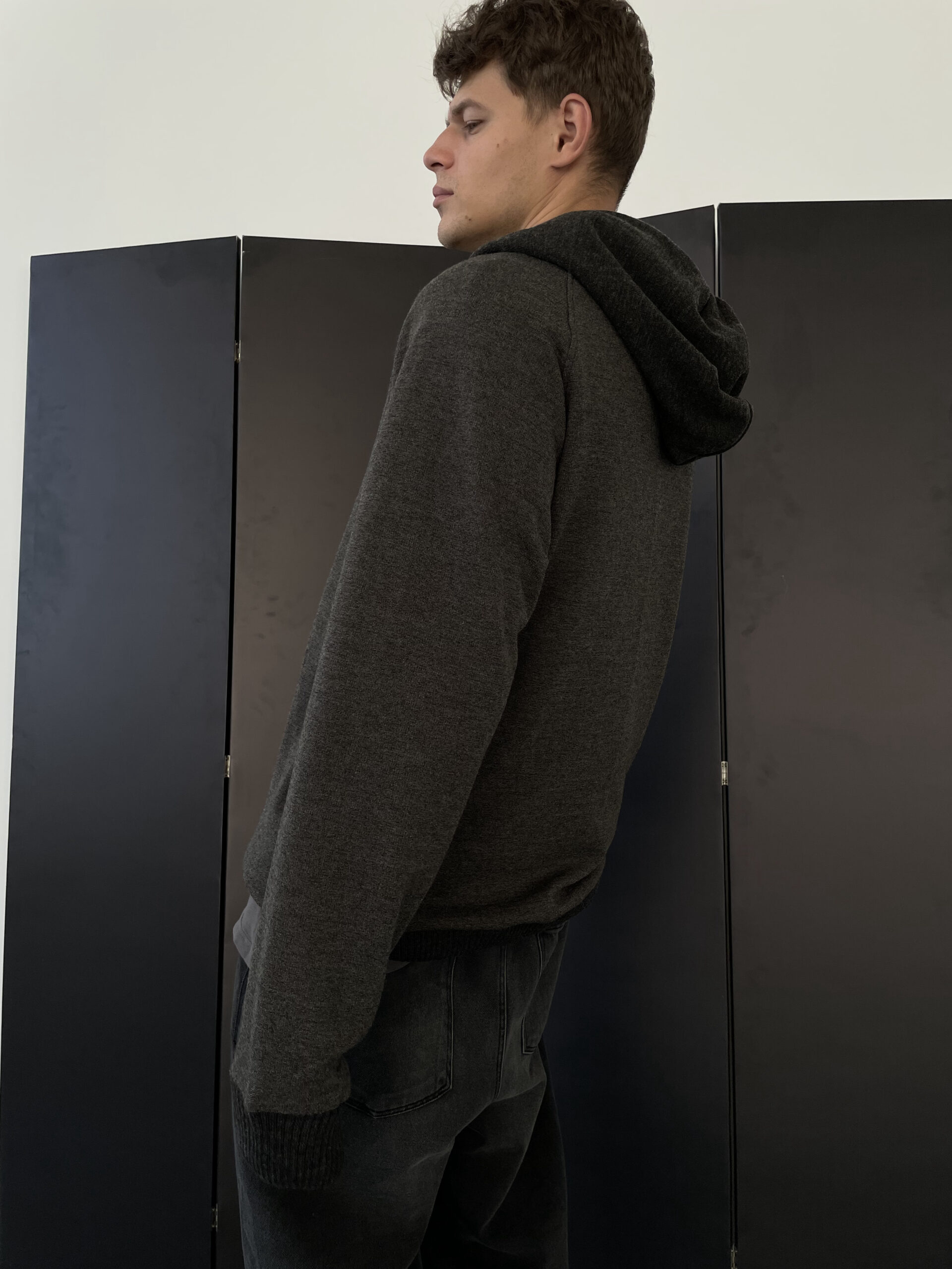 Опис. Чоловіче вовняне худі на блискавці. Великий подвійний капюшон, що регулюється. Довгі рукави реглан, манжети в’язані. Металева фурнітура УКК.