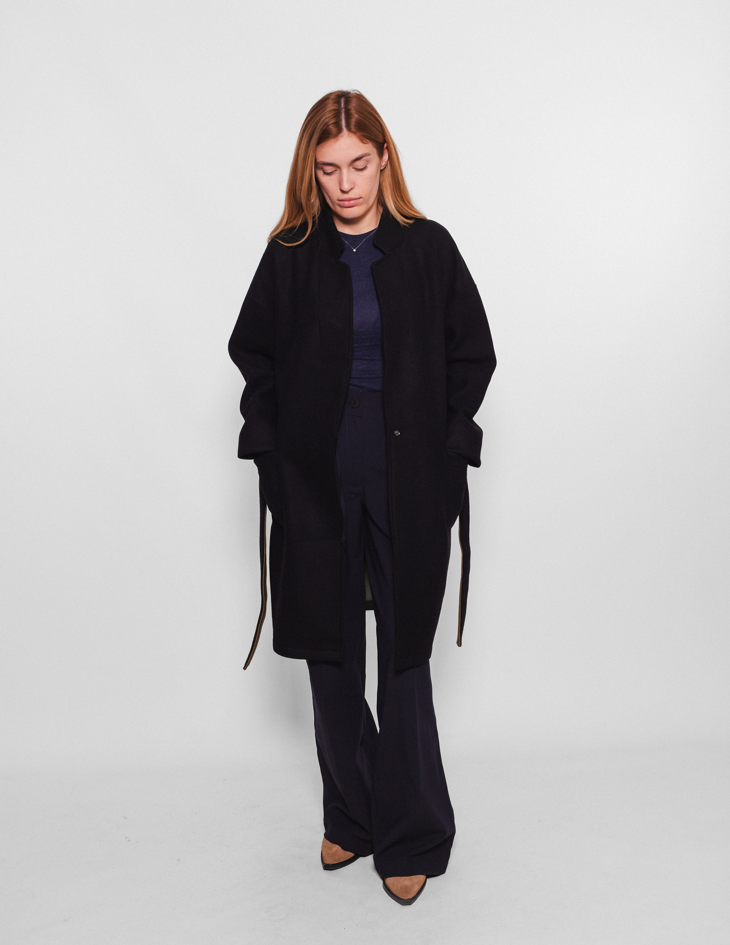 Мінімалістичний структурний крій з класичними лацканами, має форму однобортного пальто. Спущене плече, крій вільний, прямий. Застібка на приховані кнопки, в комплекті іде двосторонній пояс. Дві накладні кишені. Тепла та комфортна річ, яка може служити як верхнім одягом в міжсезоння, або доповнити Ваш гардероб як кардиган в холодну пору року.