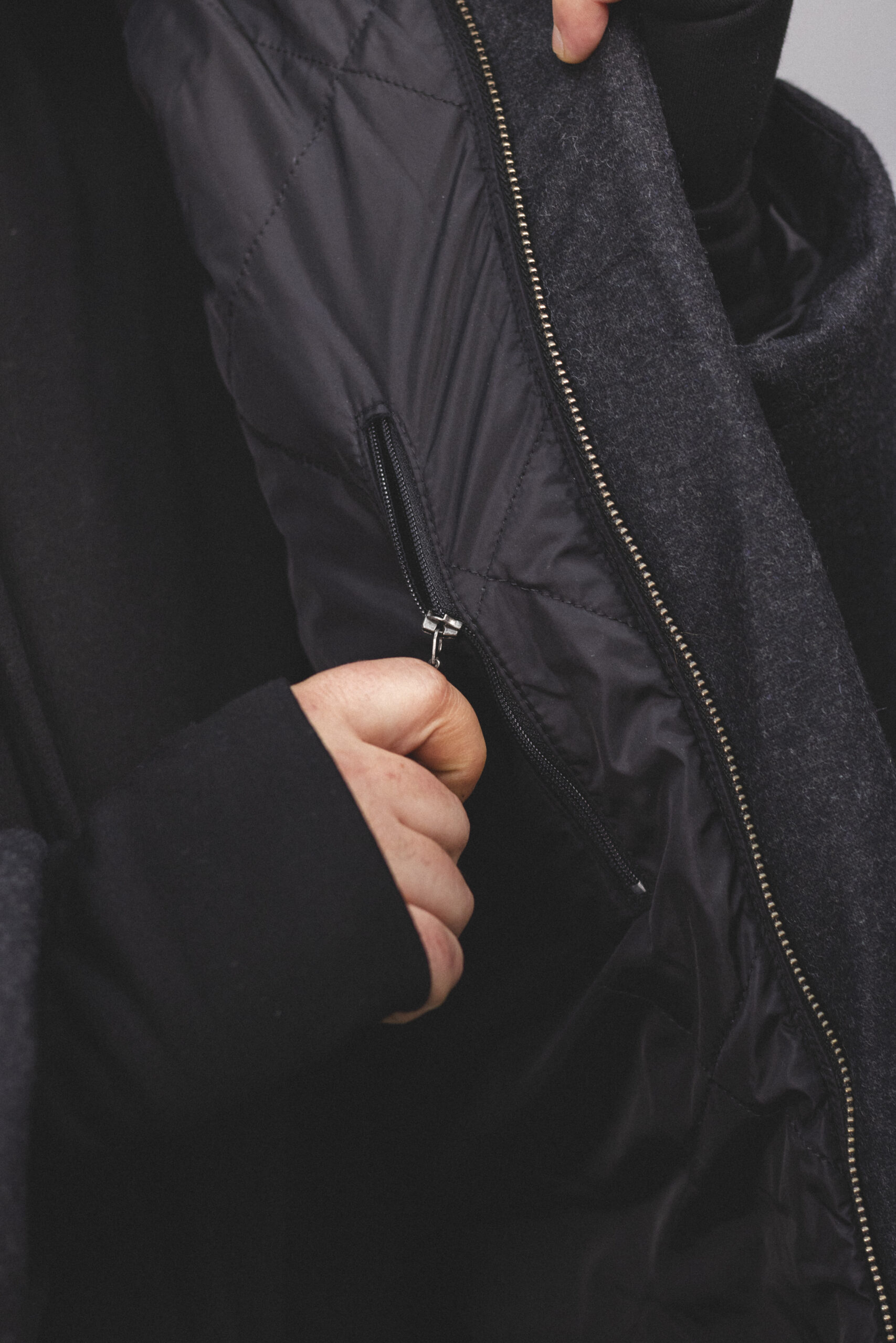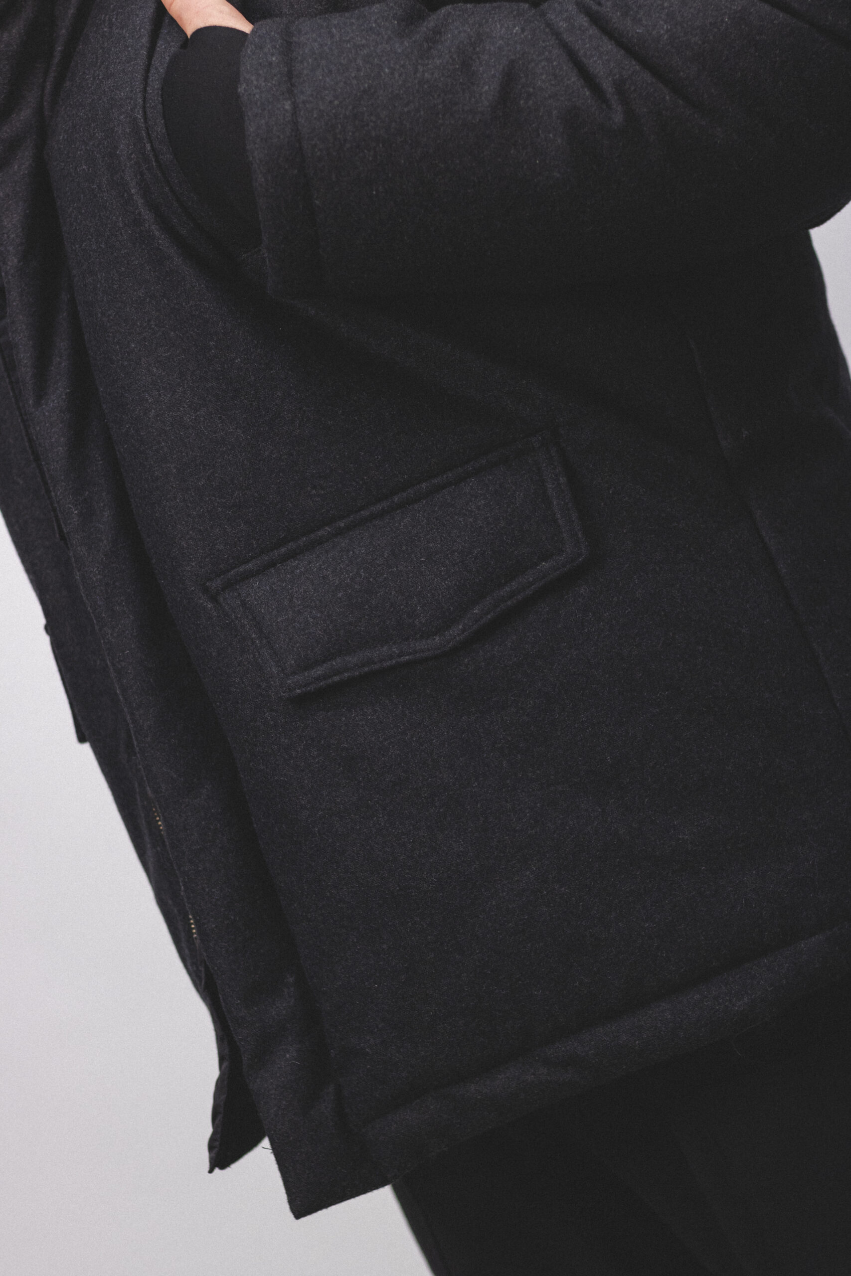 Утеплена парка з високоякісної вовни на мембрані. Така технологія поєднує ізоляційні та термічні властивості натуральних волокон зі спеціальною дихаючою мембраною на вивороті; що передбачає високий ступінь захисту від пилу, бруду, вологих плям, додатковий захист від сильного холодного вітру при високій якості вовни.