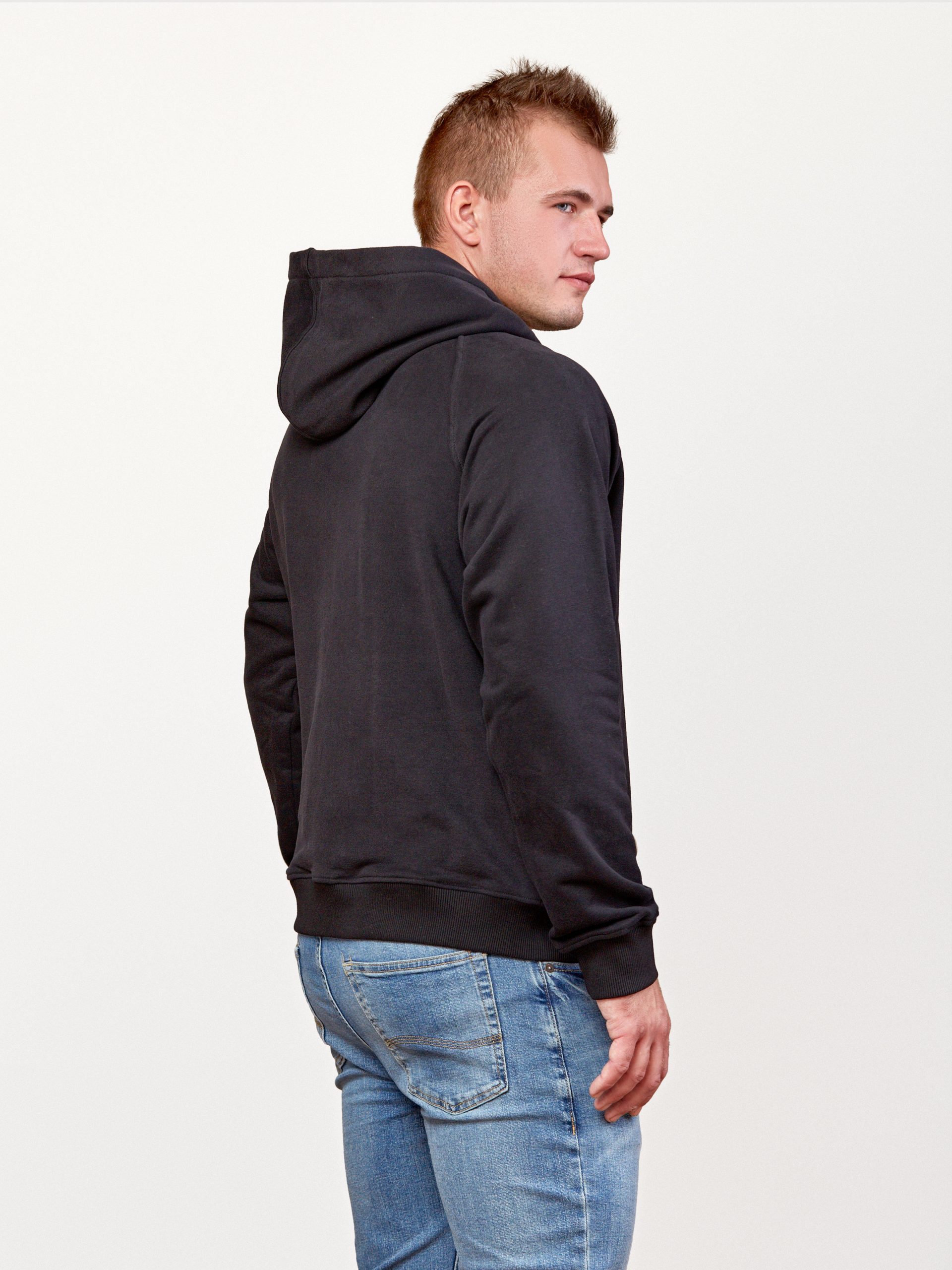 Your comfort. Designed for all day comfort, this relaxed fit. Jersey hoodie has been crafted from three-thread cotton lining of Penye quality. Warm and soft fabric with a loop inversion has a visually pronounced thread in the diagonal direction. This weaving of threads (at an angle of 45) provides an ideal appearance of a product even during long operation.