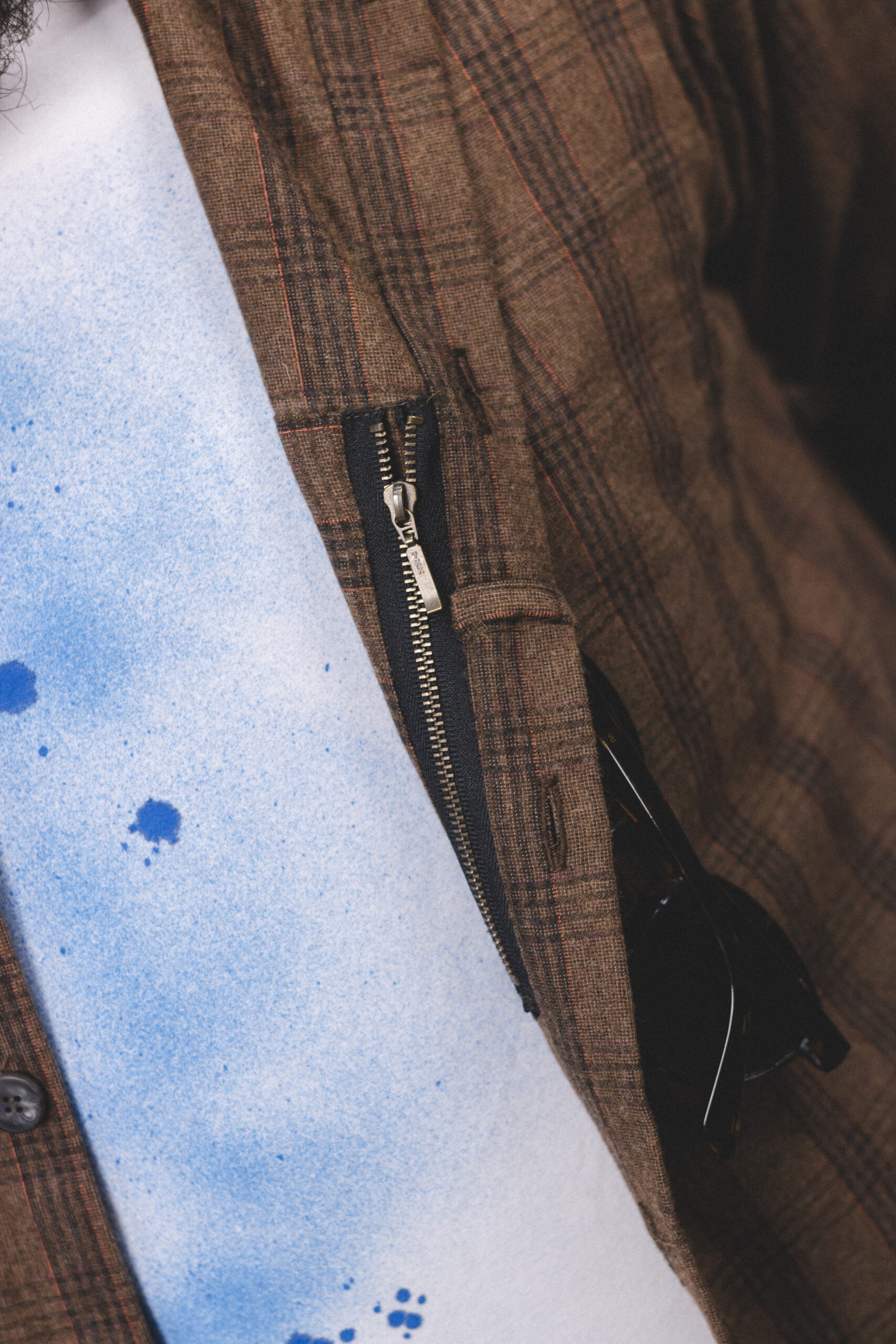 Сорочка виконана з італійської вовни вищої якості. Довгі рукави з класичними манжетами. Класичний сорочковий комір зі стійкою, внутрішня сторона стійки та кокетки спинки виконані з м’якої тактильної бавовни. Внутрішня кишеня на блискавці, зовнішня накладна кишеня з гудзиком. На внутрішній стороні борта знизу – куточок з мікрофібри для окулярів; перетинка для окулярів між гудзиками.