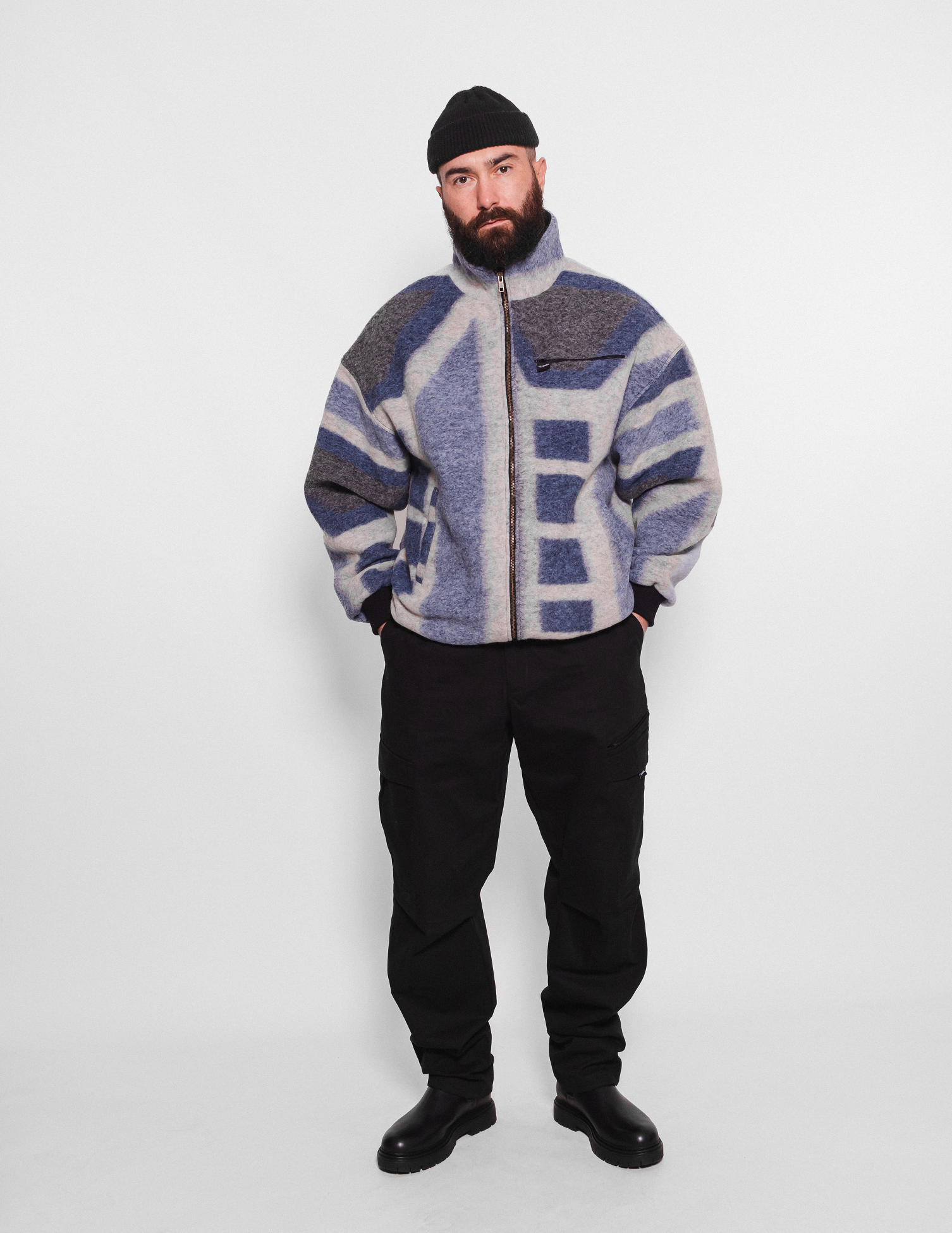 Вовняна куртка-бомбер з натуральною підкладою. Крій вільний, спущене плече. Низ регулюється металевими фіксаторами. Манжети щільної в’язки. Дві бічні кишені та одна нагрудна. Модель унісекс. Застібка на блискавку (металева фурнітура УКК).