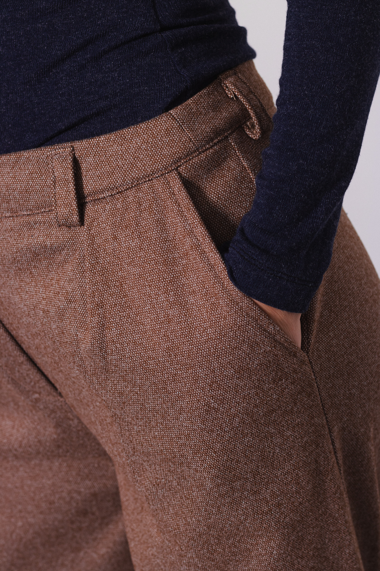 Ваш комфорт: Брюки виконані з високоякісної щільної і водночас м’якої вовни зі стрейчем. Важкість матеріалу додає мускулінності образу. М’яка тканина з гладкою та ворсистою на дотик поверхнею. З лицьової та виворітної сторони має рівномірне, без вад плетіння, еластичність у дві сторони, практично не мнеться, не кашлатиться.