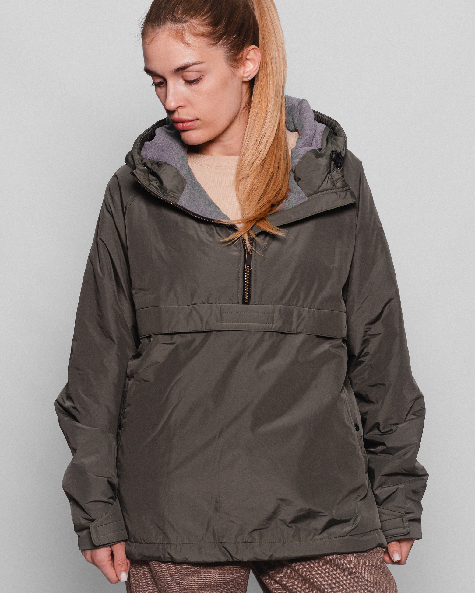 Анорак виконано з преміальної плащівки, яка швидко висихає і забезпечує захист від вітру. Флісовий пом’якшений підклад двох видів, стьобаний з тонким утеплювачем. Ідеально підходить як для активного відпочинку, так і для щоденного носіння.