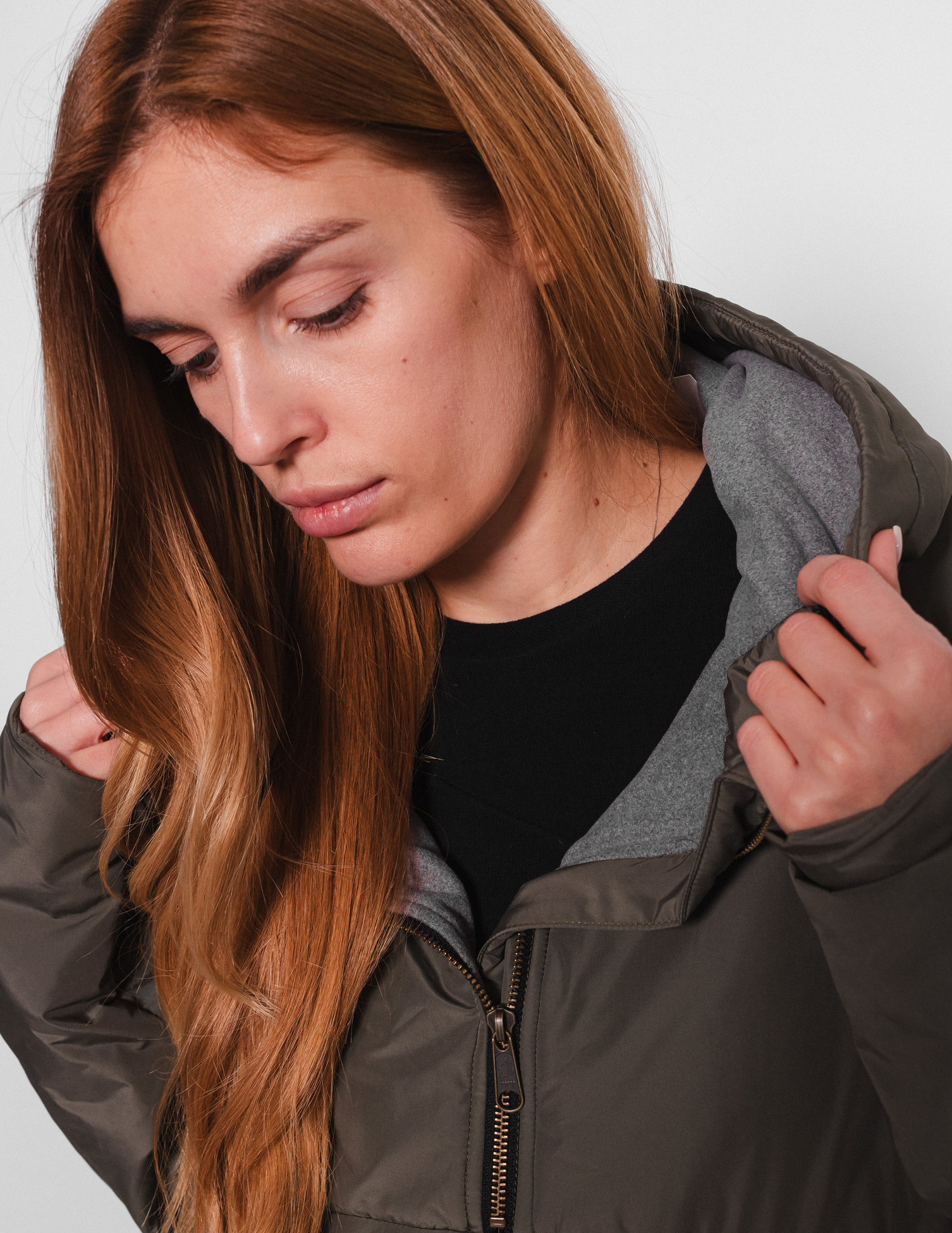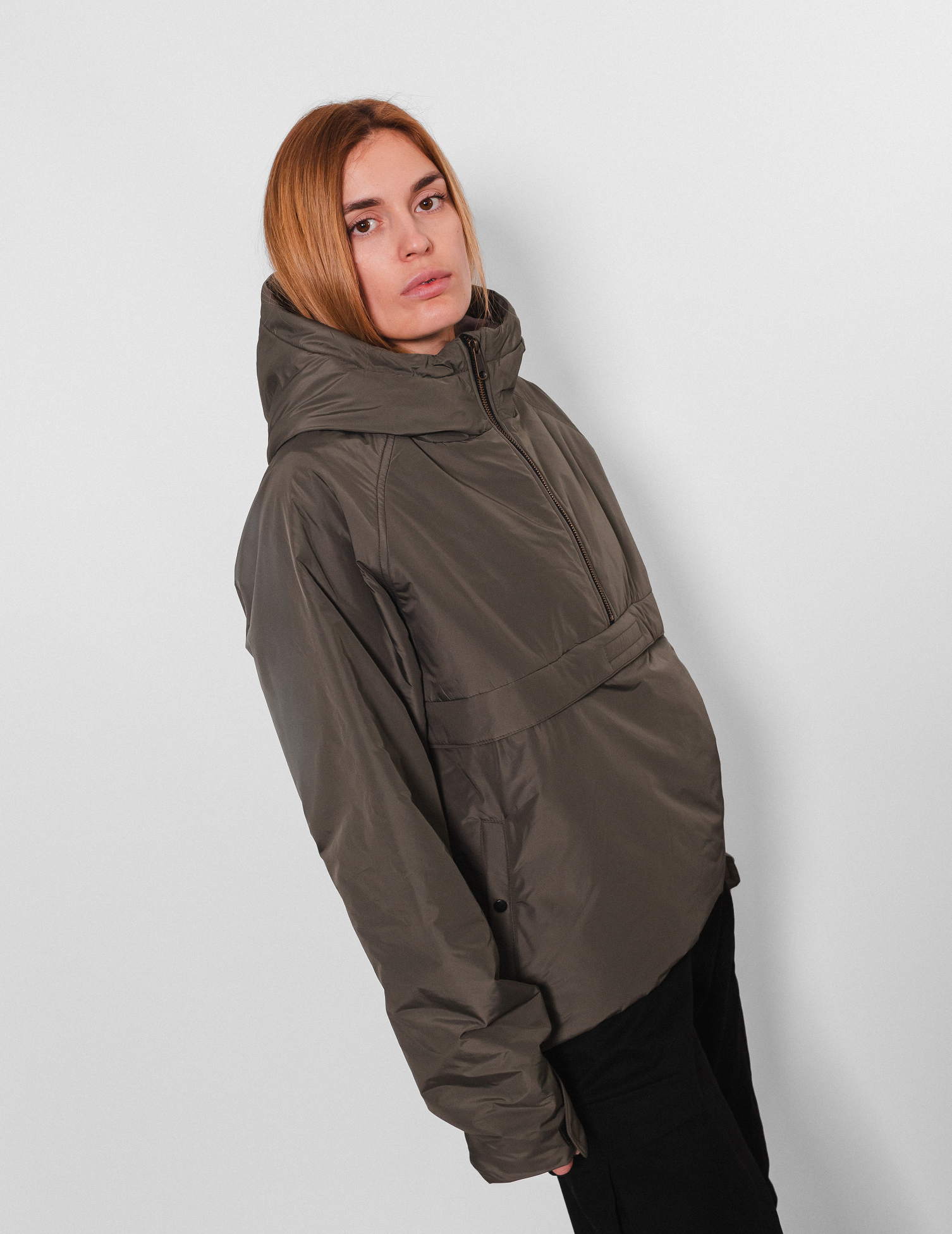 Подвійний капюшон, що регулюється. Застібка на коротку металеву блискавку, фурнітура УКК. Довгі рукави реглан, низ рукава регулюється патою з липкою євро-стрічкою контрастного кольору. Крій напівприталений, низ виробу регулюється резинкою з металевими фіксаторами.